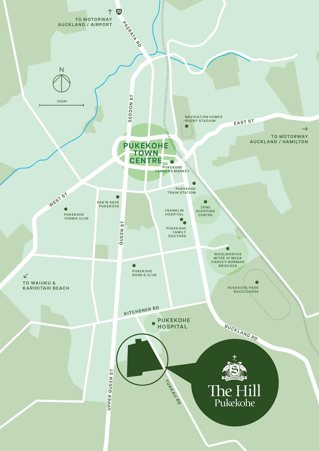 Pukekohe is located at the southern edge of the Auckland region, between the Manukau Harbour and the mouth of the Waikato River, just 50km south of Auckland’s CBD off State Highway 1 motorway.