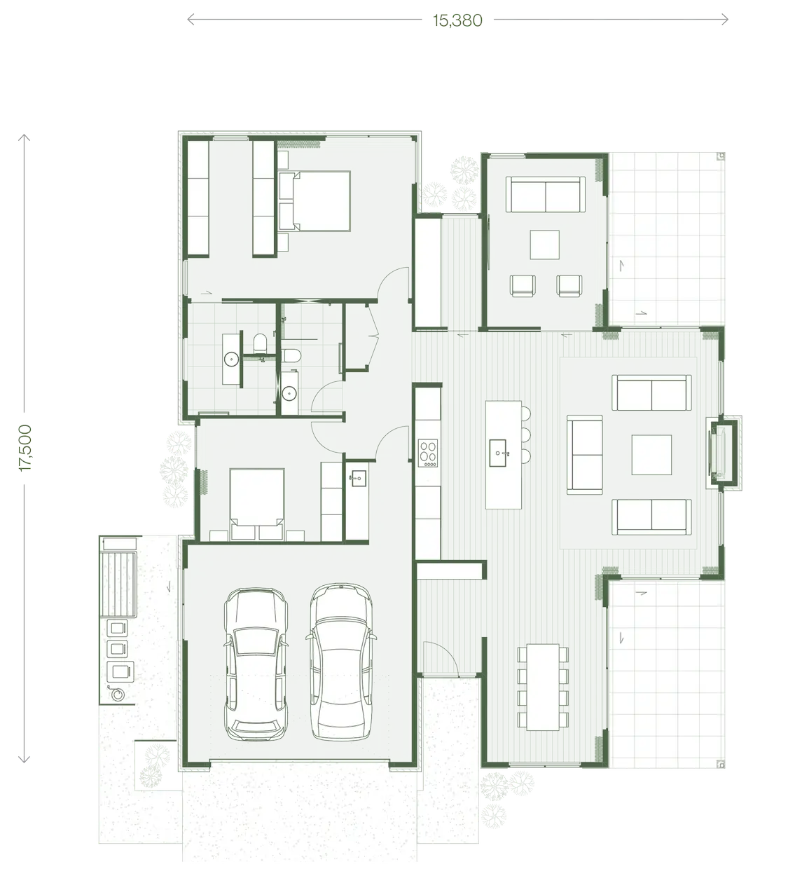 The Whanganui design lends itself to alfresco dining all year round. Decks on the north-east and north-west sides of the Villa wrap around the kitchen and lounge areas so on a sunny day, all decks can be opened to allow the cooling breeze. The media room/study has sliding doors opening out to the west. Whanganui is among the largest of our designs.